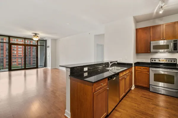 Beautiful 1 bedroom + den, 1 bath condo in highly sought-after Museum Park. This sun-filled home features hardwood floors throughout and an open-concept living and dining area flowing into the kitchen with stainless steel appliances, granite countertops, and a breakfast bar. Floor-to-ceiling windows lead to an extra-long private balcony, accessible from both the living room and bedroom, perfect for relaxing or entertaining. The spacious bedroom offers a walk-in closet, while the versatile den is ideal for a home office or additional living space. A large bathroom with soaking tub and convenient in-unit laundry complete the unit. Deeded garage parking space is available for $30,000 additional and a extra storage locker is included in the price. Full-amenity building includes 24-hour door staff, outdoor pool, fitness center, party room with sun deck, on-site management, Amazon Hub, and receiving room. Prime South Loop location minutes from the lakefront, museums, Northerly Island, public transit, the Loop, and top dining and nightlife.