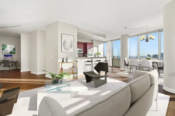 This bright and sunny 2-bedroom, 2-bath corner unit in Museum Park has been thoughtfully updated with new floors and fresh paint throughout, including all doors and frames. The sun-filled living area features floor-to-ceiling windows with stunning city skyline and Lake Michigan views, customized closets throughout the entire unit, along with an updated kitchen offering a new cooktop, new faucet, and upgraded plumbing. The split-bedroom layout includes a spacious primary suite with double closets, including a large walk-in, and a marble bath with double vanity and glass shower. A generously-sized guest room, updated hall bath and a den complete the residence. Enjoy the private balcony, perfect for entertaining, plus additional storage and a prime garage parking space located on the lobby level for $40,000 additional. Located in a full amenity building with 24-hour door staff, outdoor pool, fitness center, party room with sun deck, on-site management, and Amazon Hub. Ideally located near the South Loop, minutes from museums, parks, Northerly Island and Lake Michigan. Easy access to the highway, public transportation, the Loop, and vibrant dining and nightlife.