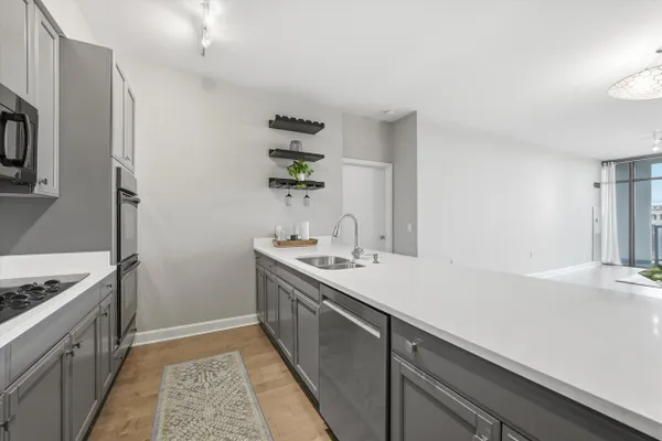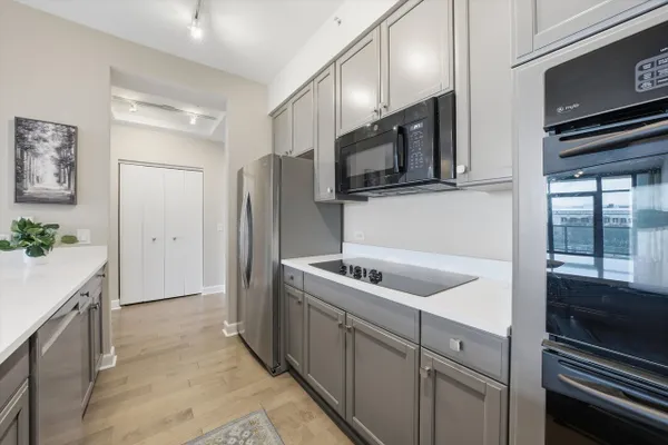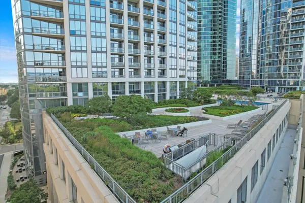 Spacious 2 bedroom, 2 bath + den in the highly coveted Museum Park Residences, ideally located in the heart of the South Loop. Step inside to a bright, open-concept layout with high ceilings and floor-to-ceiling windows. The private balcony spans the entire length of the unit, accessible from both the living area and primary bedroom, offering views of the lake, Navy Pier fireworks, and Museum Campus. Enjoy morning sunrises and beautifully landscaped gardens, perfect for entertaining or relaxing. The chef's kitchen boasts ample cabinetry and oversized quartz countertops with a breakfast bar, complete with a cooktop and double oven. It overlooks the open living area with plenty of room for a large dining table. The thoughtfully designed split-bedroom layout features a spacious primary suite with three closets and an ensuite bath with a double vanity, deep soaking tub, and separate shower. The generously sized guest bedroom is just steps away from a recently updated guest bath. An additional flex room offers versatile space - ideal as a den or home office. Meticulously maintained and updated with new engineered wood flooring throughout, this unit exudes a modern, refreshed feel. Additional storage, bike racks, and a prime parking space in the heated garage are included! An in-unit washer and dryer, along with generous closet space throughout, add convenience and functionality. Museum Park Tower is a full-amenity, professionally managed building with 24-hour door staff and on-site maintenance. Enjoy a renovated fitness center, party room with sun deck, Amazon Hub, outdoor heated pool with grill and dining area, fire pit for evening gatherings, and an in-building cafe/wine bar & cleaners. Monthly assessments cover everything except electric. Ideally located just minutes from the Loop, Grant Park, Millennium Park, Museum Campus, Soldier Field, Northerly Island, Lake Michigan, public transit, with easy access to major highways- surrounded by top dining, coffee shops, shopping, and schools. Experience South Loop living at its finest!
