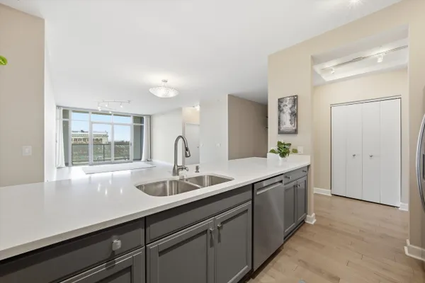 Spacious 2 bedroom, 2 bath + den in the highly coveted Museum Park Residences, ideally located in the heart of the South Loop. Step inside to a bright, open-concept layout with high ceilings and floor-to-ceiling windows. The private balcony spans the entire length of the unit, accessible from both the living area and primary bedroom, offering views of the lake, Navy Pier fireworks, and Museum Campus. Enjoy morning sunrises and beautifully landscaped gardens, perfect for entertaining or relaxing. The chef's kitchen boasts ample cabinetry and oversized quartz countertops with a breakfast bar, complete with a cooktop and double oven. It overlooks the open living area with plenty of room for a large dining table. The thoughtfully designed split-bedroom layout features a spacious primary suite with three closets and an ensuite bath with a double vanity, deep soaking tub, and separate shower. The generously sized guest bedroom is just steps away from a recently updated guest bath. An additional flex room offers versatile space - ideal as a den or home office. Meticulously maintained and updated with new engineered wood flooring throughout, this unit exudes a modern, refreshed feel. Additional storage, bike racks, and a prime parking space in the heated garage are included! An in-unit washer and dryer, along with generous closet space throughout, add convenience and functionality. Museum Park Tower is a full-amenity, professionally managed building with 24-hour door staff and on-site maintenance. Enjoy a renovated fitness center, party room with sun deck, Amazon Hub, outdoor heated pool with grill and dining area, fire pit for evening gatherings, and an in-building cafe/wine bar & cleaners. Monthly assessments cover everything except electric. Ideally located just minutes from the Loop, Grant Park, Millennium Park, Museum Campus, Soldier Field, Northerly Island, Lake Michigan, public transit, with easy access to major highways- surrounded by top dining, coffee shops, shopping, and schools. Experience South Loop living at its finest!